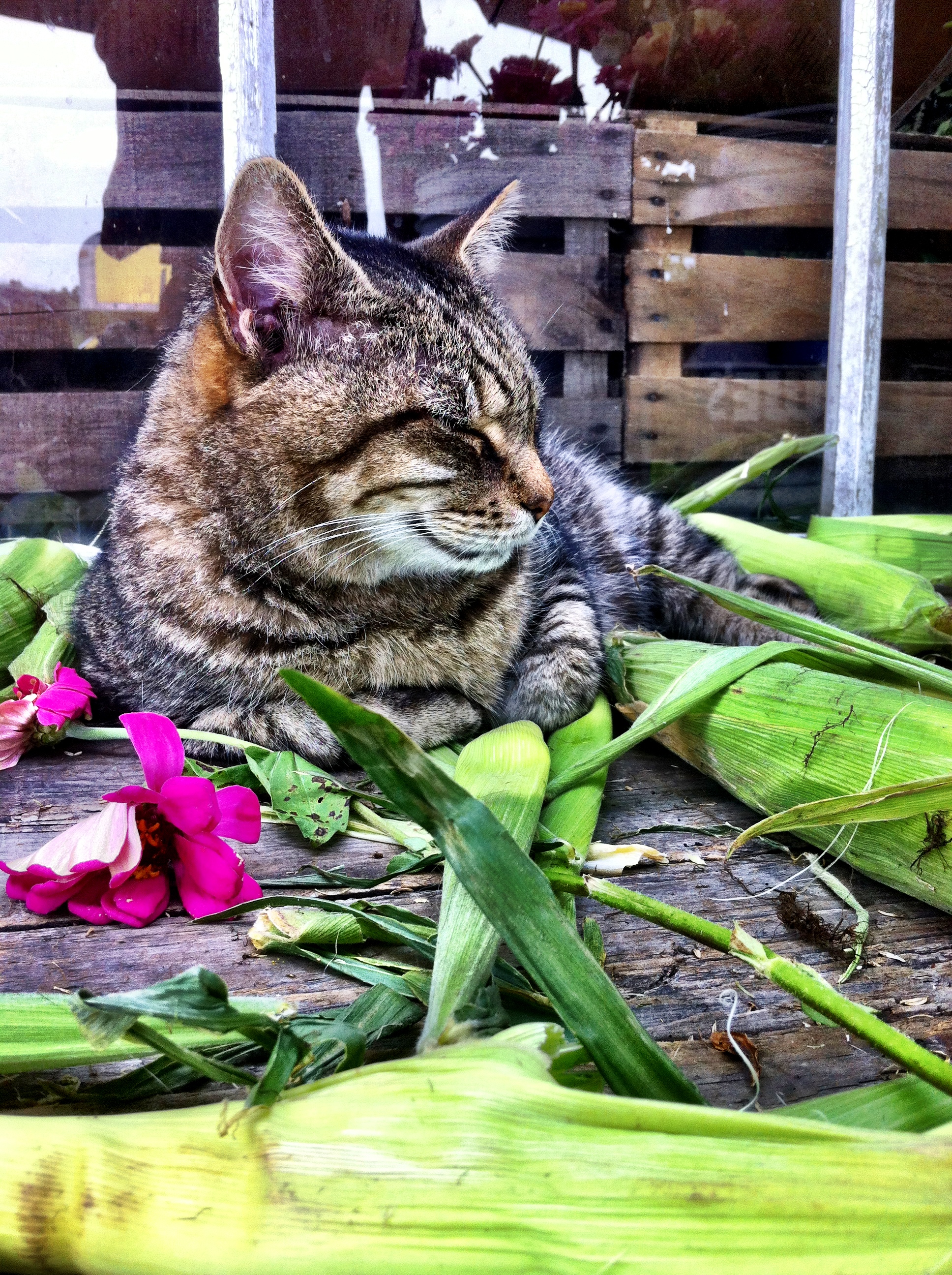 Dane, Nolan and I had a laughably easy, and beautiful, commute out of the city to Blooming Hill Farm—only about an hour away. Blooming Hill is not just a fantastic farm; it represents a truly inspired business model. The on-site shop caters to hip New Yorkers—it’s just rustic enough to seem authentic (the feral cats sleeping in the pile of corn were legitimate), but it has been meticulously designed with subtle touches of “barn-chic.” Vintage milk bottles are lined up behind the prepared foods counter, and reclaimed barn doors provide structure and a bucolic aesthetic. It was well done–visually stunning.