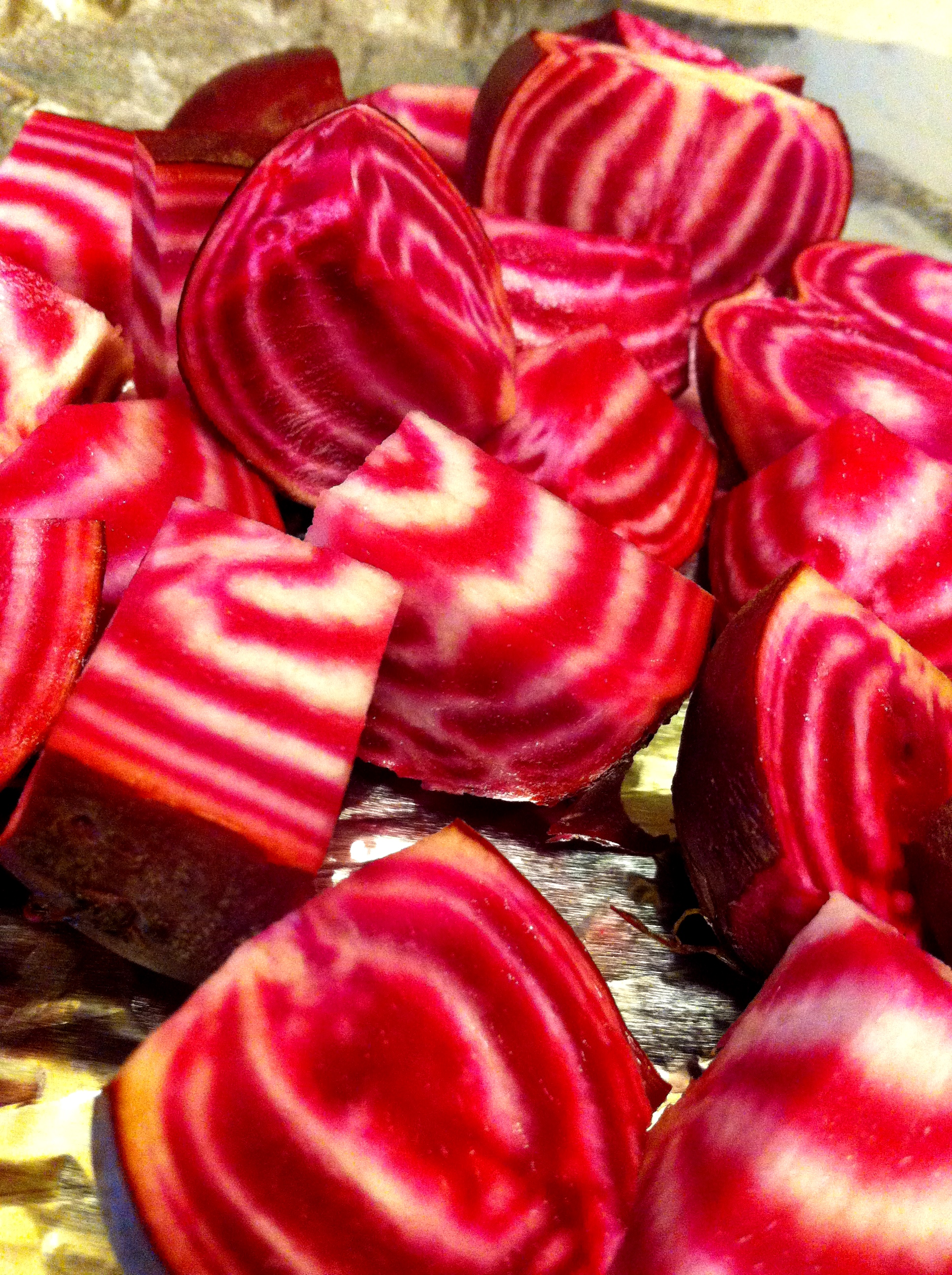 Bounty: Gorgeous candy-striped beets. I braved the oven to roast these puppies. Delicious.